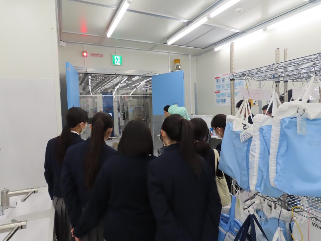 7月にオンラインで高2理系の生徒対象にキャリア学習を意識した会社説明会を、マイクロンメモリジャパン様にしていただいたのですが、第2弾の今回は、吉川の工場へ訪問し、広い敷地にある開発・研究棟から半導体を製造するクリーンルームなどを案内していただき、座談会で仕事のことや高校・大学で学んでほしいことなど、たくさん話をしていただきました。