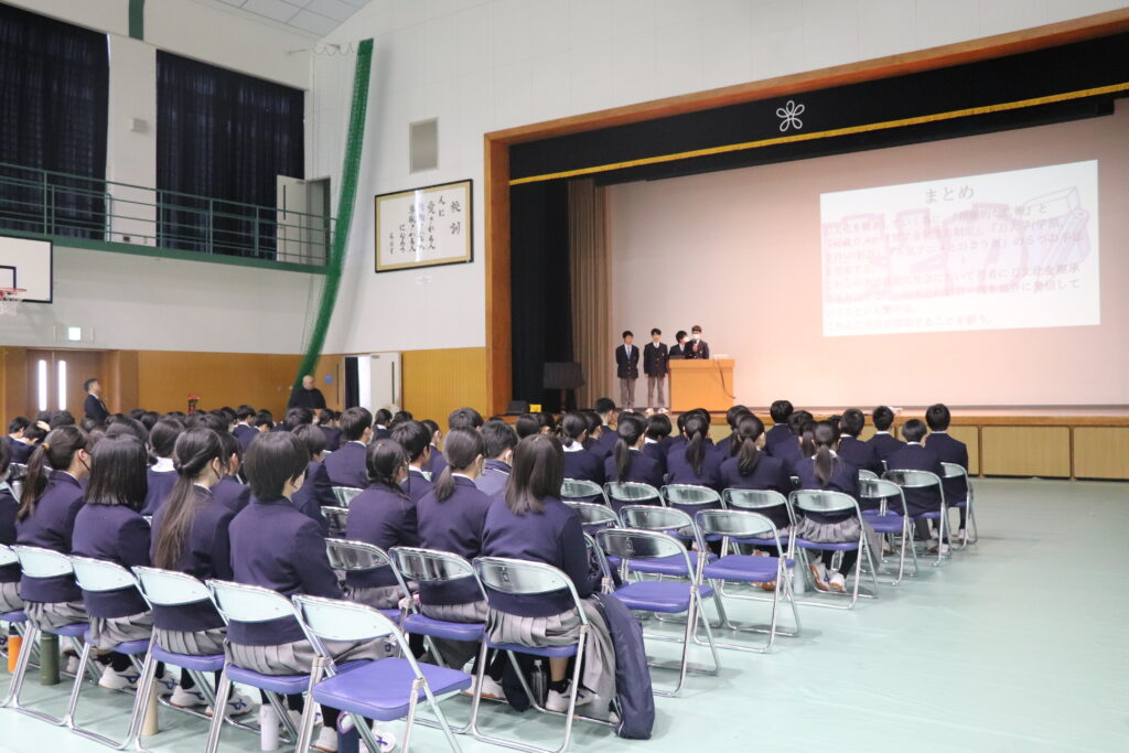 中学2年生は、修学旅行での活動からクラスごとのテーマをもとに、班ごとにアイデアを出し合い、議論を重ね、自分たちなりの答えを導きだしました。自分たちの住む地域や、この国の未来を「自分事」として捉え、真剣に考え抜いたこの経験は、生徒たちにとって大きな自信となったはずです。